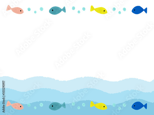 watercolor, frame, frame, sea, creature, sweet, summer, fish, illustration, midsummer, fish, beach, biology, resort, aquarium, sea, beach, travel, material, okinawa, swim, light, journey, tour tourism, scuba diving, summer getaway, water, marin, background, blue, blue, nature, copy space, wave