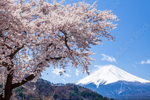 富士山と桜 山梨県富士河口湖町河口湖にて