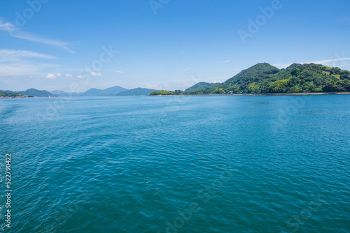 ferry, copy space, sunny, sky, island, landscape, sea, tour tourism, sea, blue skies, tourist attraction, travel, japan, journey, summer, beach, nature, boat, view, cloud, seto inland sea, light, summer, china, resort, water surface, blue, wave, open air, mountain, green, shikoku, showplace
