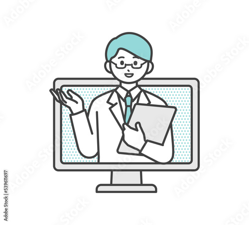 man, medical care, doctor, doctor, labcoat, apothecary, care, hospital, doctor, exam, clinic, refer, proposal, guidance, exposition, indication, pointing, attention, marode, health, check-up, version, personal computer, online, waist up, young, youth, avatar, people, japanese, illustration, face, pretty, material, illustration, flat, pop