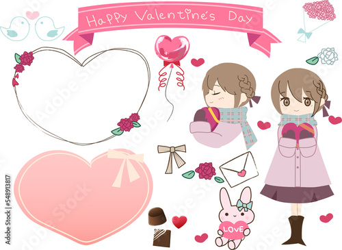 love, heart, valentine, illustration, frame, love, decoration, girl, woman, girl, confession, sweet, ribbon, balloon, bouquet, bird, handwriting