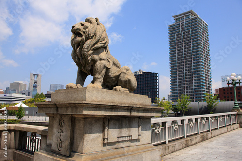 lion, bridge, vertical, decoration, osaka, japan, parapet, image, open air