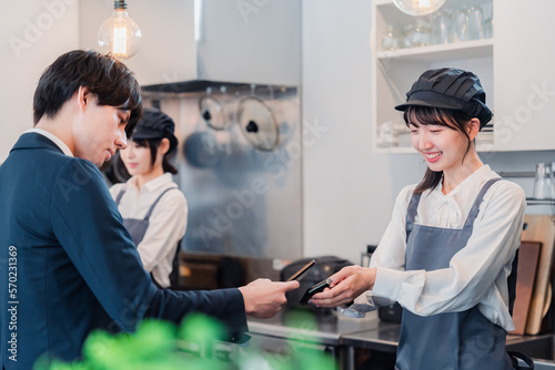 credit card, smartphone, card, clearing, payment, terminal, coffee, client, businessman, employee, man, smartphone, mobile, technology, electronic, digital, eatery, eatery, cafes, suit, staff, cash desk, counter, finance, chef, cash, pressed for time, money, sideline, part, asian, japanese, chinese, korean, copy space