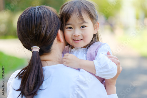 family, girl, children, mother, children, mother, woman, cuddle, hug, embrace, child rearing, mother, mother, toddler, daughter, girl, children, children, chum, play, park, nature, green, verdure, open air, open air, outdoors, walk, lifestyle, two people, smile, happy, japanese, asian