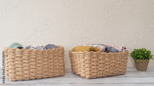 clothes, outfit, season, trimming, lifestyle, costume, dispose, fold, garment, japan, colourful, room, fashion, home, house, clean, housekeeping, life, homemaker, indoor, recycling, dress, indoor, grain, shirt, basket, basket, winter, summer, spring, fall, table, basket, background, white, copy space, cleaning