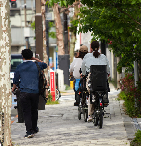 bike, children, mother, young, homemaker, people, japanese, lifestyle, way, route, people, city, vehicle, transportation, safe, woman