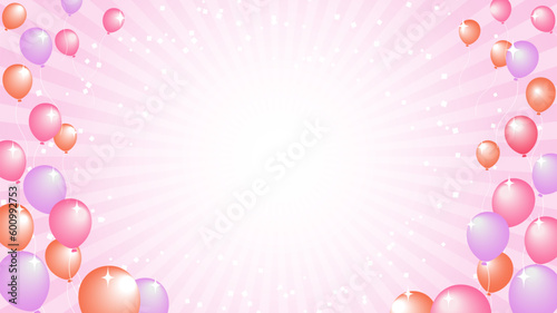 ピンク色の放射線と風船がキラキラ輝く背景イラスト