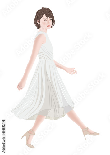 woman, young, walk, walking, style, clean, attitude, fashion, skirt, heel, illustration, springy