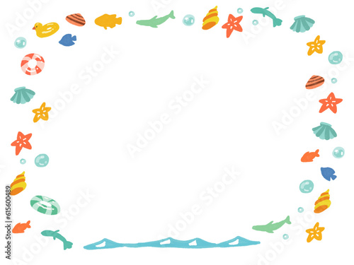 夏・海イメージのカラフルな手書き水彩風フレーム