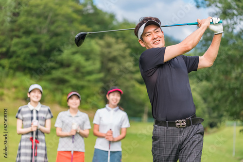 golf, golf course, man, driver, shot, golf club, golfer, golf course, exercise, sport, leisure, friends, smile, fellow, pursuit, round, nature, employee, course, athlete, colleague, lesson, fairway, club, group, team, school, swing, fun, training, japanese, woman, vacation, 30s, asian, open air, people, chinese, korean