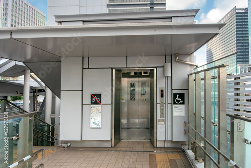 footbridge, lift, footbridge, wheelchair, wheelchair, crosswalk, caring, image, unmanned, blue skies, sunny, crossover, japan, tokyo, landscape, tokyo, transportation, city