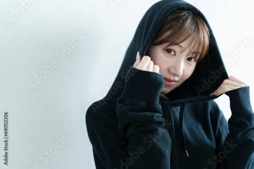 woman, cleanliness, smile, boredom, hair, make-up, beauty, face, fashion, smile, person, model, smiling, 1, studio, brunette, japanese, young, glamour, lady, standing, pose, look, familiar, elegant, style, black, clothing, leg, business, businesswoman, garment, cool, cold, winter, happiness, warm, hand, fall, pretty, sweater, up, lifestyle