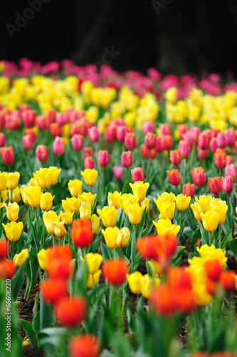 tulip, flower, plant, nature, flower petals, macro, macro, closeup, group, community, flower garden, red, pink, yellow, white