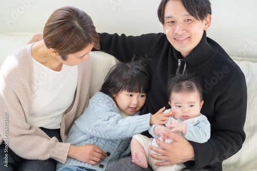 family, japanese, family, couple, children, children, child rearing, father, father, mother, mother, mother, father, people, love, love, spring, man, woman, insurance, couch, seated, lifestyle, live, life, relax, portrait, baby, future, happy, joyful, fun, reparation, assistance, be of use, smile, system, father, mother