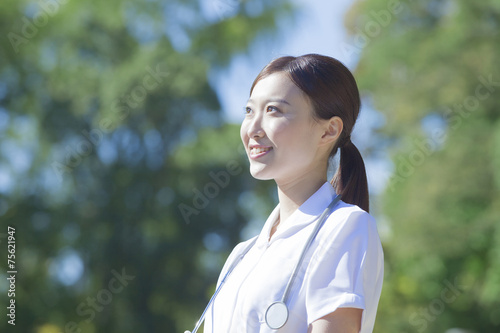 japanese, people, woman, man, alone, two people, nurse, nurse, nurse, refreshing, newcomer, light, sweet, beauty, young, morning, work, health care, medical care, insurance, care, relax, smile, portrait, lust, hope, future, exam, open air, stethoscope, care, doctor, green, park, waist up, conversation, break, lunch break, blue skies