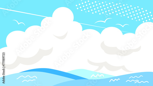 blue skies, weather, dot, sunny, sea, summer, thunderhead, vector, illustration, bathing, travel, midsummer, wave, july, august, vacation, sky, gull, condensation trail, blue, blue, refreshing, sweet, background, background, material, view, landscape, copy space, graphic, design, marin, summer getaway, water