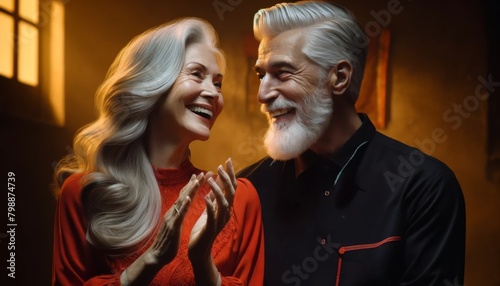 couple, aged, couple, partner, conversation, communication, man, woman, love, love, two people, people, people, 2, smiling, fashion, beauty, family, friends, smile, home, fun, model, portrait, grandfather, grandparent, waist up, up, beard, long hair, applause, gesture, cuddle