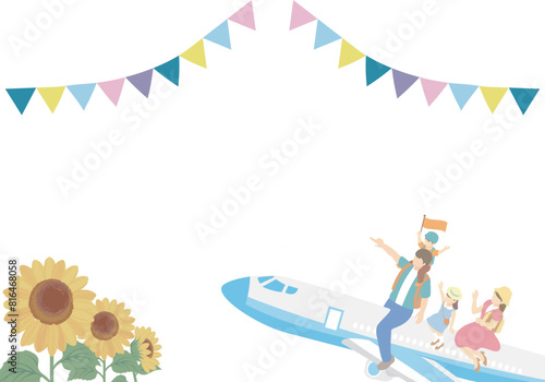 旅行 夏 フレーム 人物 家族 ひまわり 背景 コピースペース イラスト素材