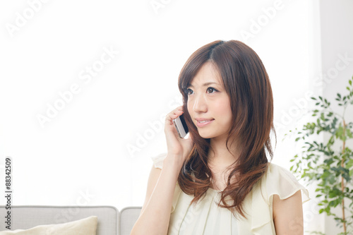 smartphone, woman, mobile phone, lifestyle, people, young, call, smartphone, student, beauty, conversation, smile, refreshing, natural, room, live, indoor, sweet, asian, chinese, korean, taiwanese, couch, seated