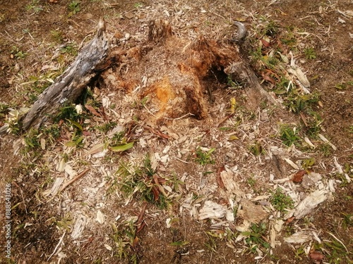 自然界で土に帰る過程の朽ちた切り株