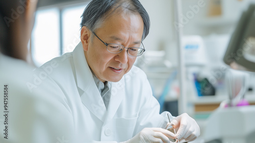 dentist, middle-aged, japan, children, exam, labcoat, gentle, clinic, inspection, teeth, mirror, equipment, light, spring, medical care, redress, prevention, manipulation, health, care, acquaintance, assistance, light, patient, welcome, smile, technique, good, confidence, building, clean, flexible, courteous, protocol, intimacy, attention, design, concentration, guardian