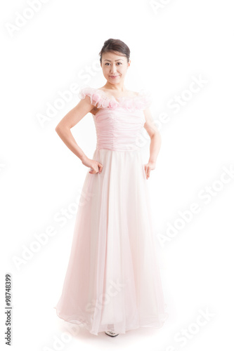 woman, dress, alone, stand, white background, copy space, studio, shot, model, fashion, party, anniversary, love, lover, date, japanese, asian, outing, young, 30s, cut-out, material, smile, fun, smile, pink, gorgeous, clean, skirt