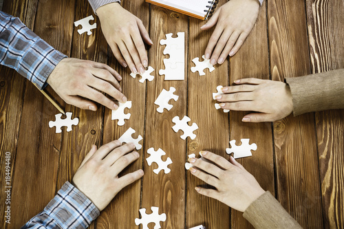 business, find, solution, teamwork, together, casual attire, concept, people, team, woman, female, jigsaw, connect, piece, table, workplace, game, strategy, help, support, puzzle, suit, cooperation, connection, idea, success, partnership, part, thinking, group, top, view, communication, join, man