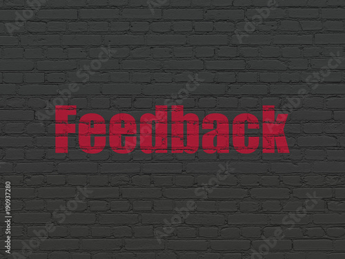 Finance concept: Painted red text Feedback on Black Brick wall background