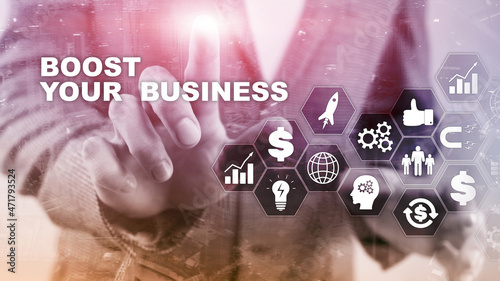 Financial and Technology concept. On a virtual screen inscription: Boost Your Business