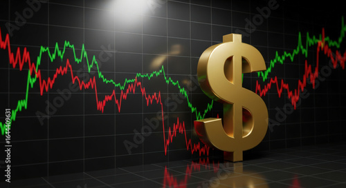 Financial Growth and Investment A Golden Dollar Sign Stands Before a Rising Stock Market Graph Symbolizing Economic Success and Prosperity