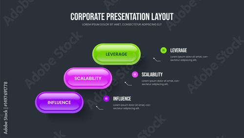 Financial Profile 3 Step Diagram Slideshow Layout. Advertising Development Presentation Template Vector Illustration. Creative Report Three Element Infographic Frame Design.