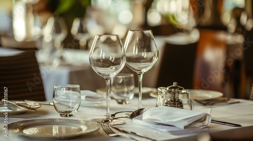 table setting, fine dining, wine glass, silverware, eatery, dinner, luxury, hospitality, event, banquet, formal, elegant, service, place setting, cutlery, napkin, glassware