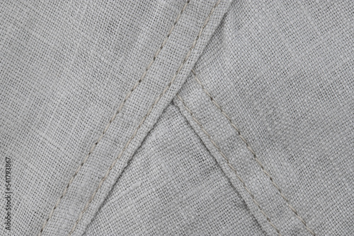 finishing stitch, double seam, made with beige threads in a product made of red linen fabric