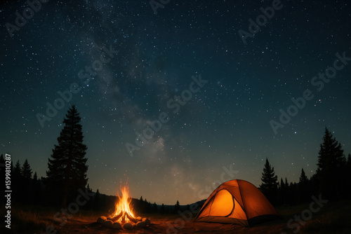 tent, fire, camping, outdoors, wilderness, adventure, nature, evening, shelter, warmth, cosy, balefire, campground, dusk, evening sky, hiking, lantern, relaxation, vacation, escape, solitude, calmness, peaceful, remote, forest, exploration, journey, backpacking, campfire, cooking, flames, sleeping-bag, star, smoke, backpack