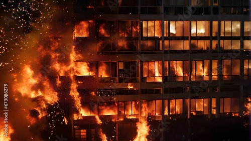 オフィスで火災、ビル火災|Fire in the office. building fire. Generative AI