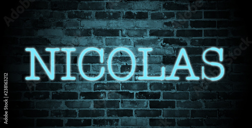 name, saint nicholas, first name, boy, man, infant, baby, male, design, graphic, communication, background, brick, wall, neon, brick wall, man, masculine, manly, birthday, anniversary