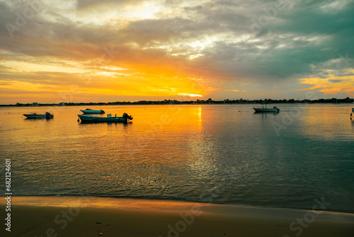 Fishing boats at Shela Beach at sunset in Lamu Isand, Kenya