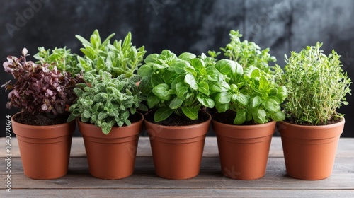 herb, herb, oregano, basil, thyme, sage, chives, potted, plant, green, fresh, gardening, kitchen, food, favor, cooking, healthy, natural, organic, growth, aroma, fragrant, spice, seasoning, rustic, wooden, table, background, brown, pot, dirtied, foliage, leaf, agriculture, botany, homegrown, garden, harvest, vegetable, culinary, biodiversity