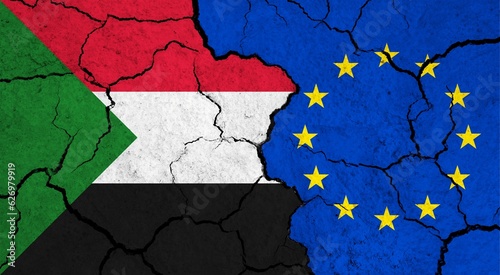 sudan, eu, flag, cracked, relation, cooperation, partnership, politic, economy, government, trade, crisis, friendship, agreements, international, diplomacy, versus, conflict