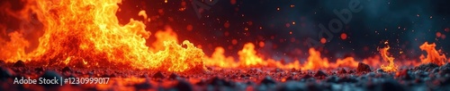Flames and embers explode in a fiery explosion, wave, rise, splatter