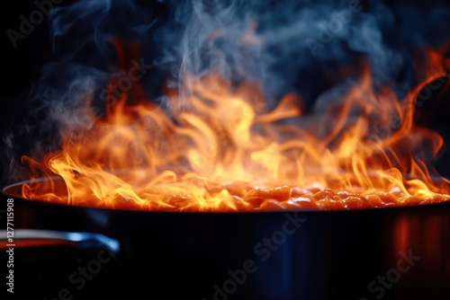 flames, pot, food, stove, heat, cooking, kitchen, fire, smoke, boil, meal, ingredient, temperature, surface, gas, electric, vessel, aroma, simmer, pan, utensil, chef, receipe, oil, liquid, steam, sauce, colours, movement, energy, kitchen utensile, dish, preparation, warmth, texture, favor, safety, cookery, cookware