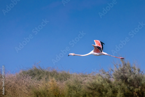 Flamingo A bird in flight with outstretched wings