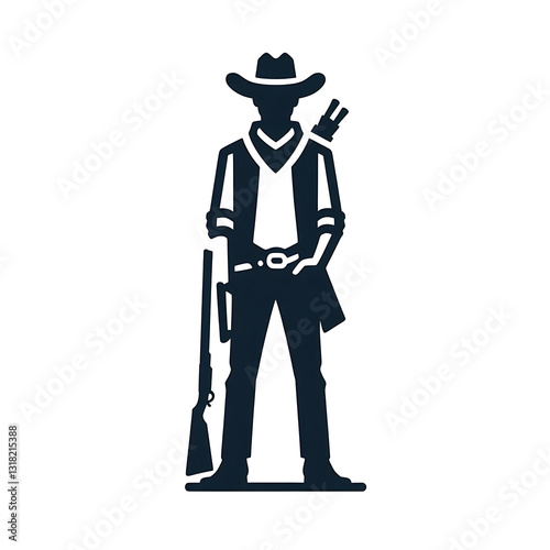 flat and minimal Cowboy full body icon of silhouette illustration on white