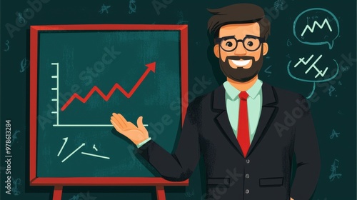Flat Design Illustration of Leader Presenting Growth Strategy in Business Planning Session