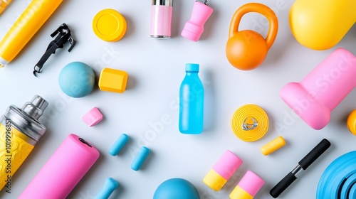 Flat Lay Colorful Fitness Equipment and Accessories for Workout