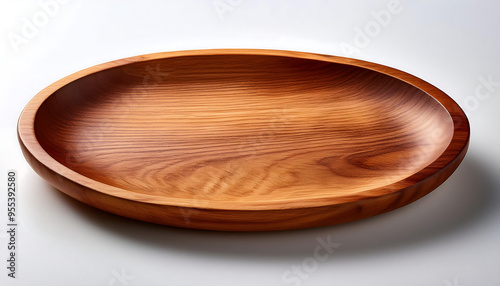 Flat lay of a wooden plate isolated on a white surface.
