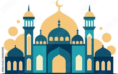 Flat style Mosque isolated on clear background. Vector Illustration. Eid Mubarak greetings. Ramadan Kareem.