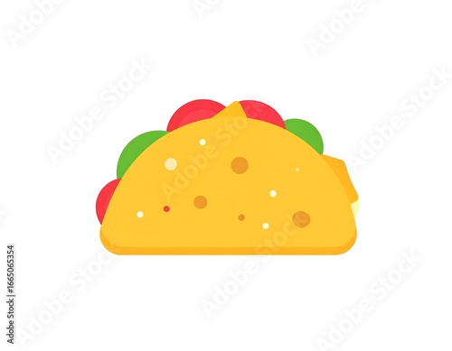 taco, food, mexican, illustration, flat, graphic, design, image, tortilla, filling, vegetable, cheese, spice, yellow, orange, red, green, side, simple, fast, dish, snack, lunch, dinner, art, profile, isolated, delicious, quick