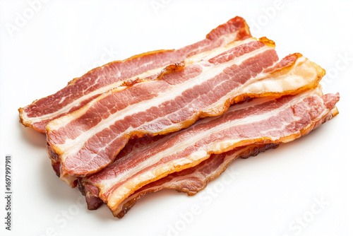 Flawless fresh raw bacon slices isolated on white background, generated AI