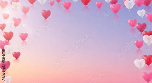 Floating Hearts on Soft Pink Purple Background.